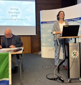 Alex Engler hielt einen Vortrag aus dem Tarifbereich und die aktuellen Tarifverhandlungen.